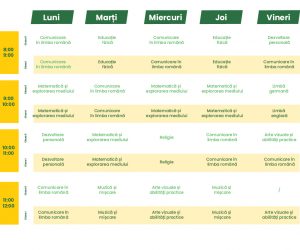 Programul școlii este unul extins, oferind posibilitatea elevilor să aprofundeze informația fără să aibă presiunea temelor de acasă după terminarea orelor